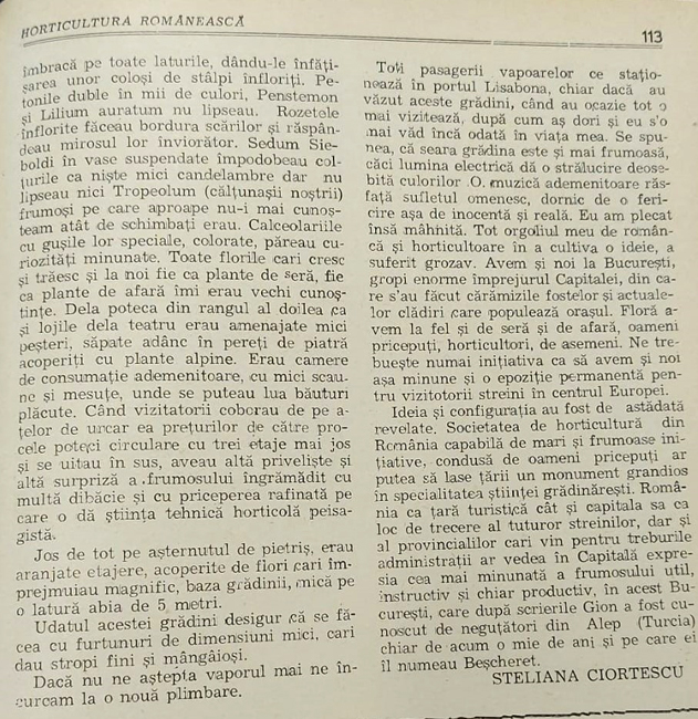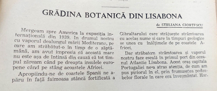 Articolul Stelianei Ciortescu despre grădina botanică din Lisabona,
