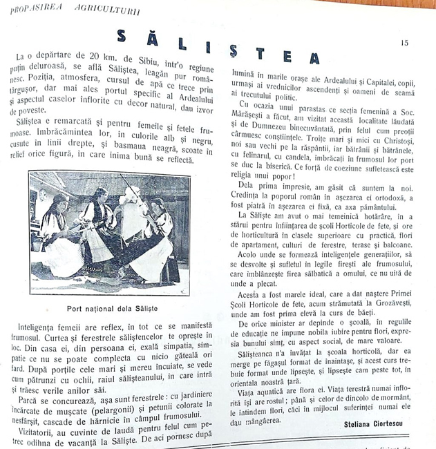Octombrie 1935, București. Articolul „Săliștea” publicat de Steliana Ciortescu